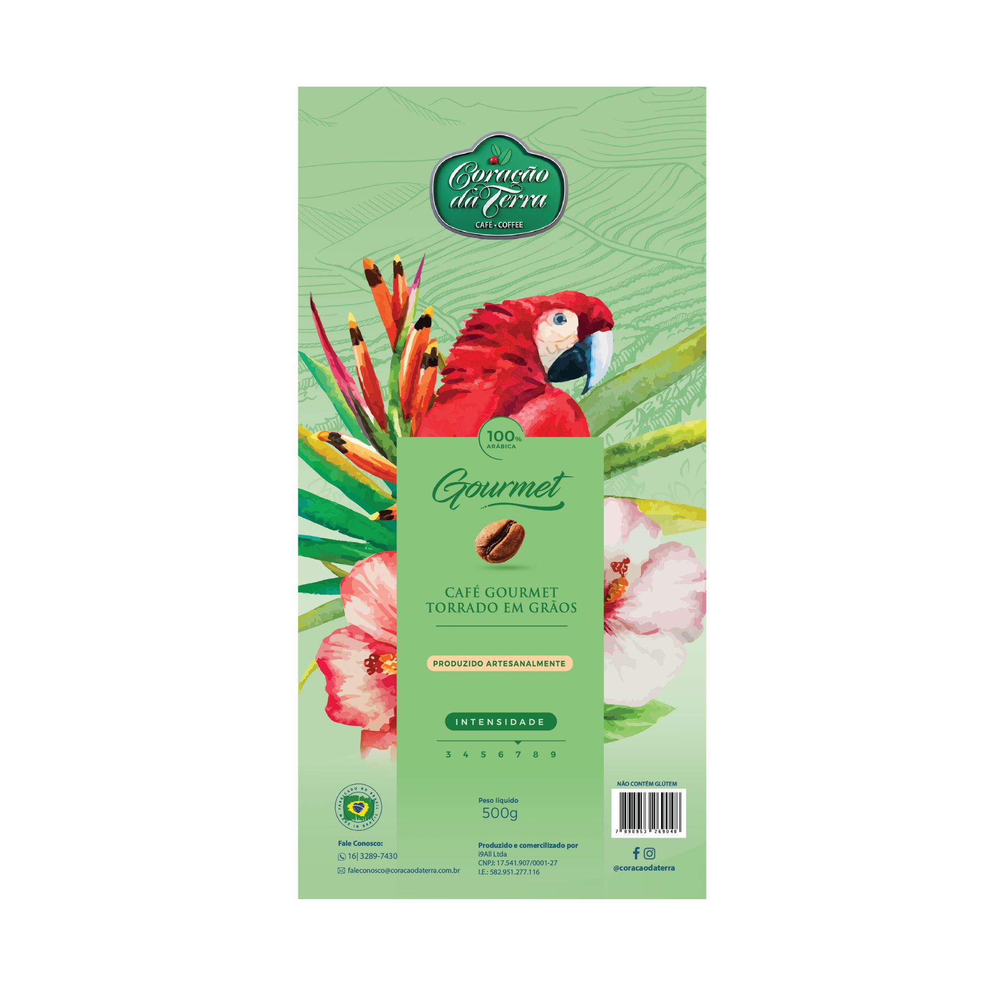 Café Coração da Terra, Gourmet, embalagem de 500 gramas, nas versões grãos e moído, com notas de chocolate amargo, melado, floral, cítrico, apresentando acidez cítrica, longa finalização com notas de chocolate e cítricas. Este café pontua no mínimo 84 pontos, de acordo com a tabela da SCA – Specialty Coffee Association.