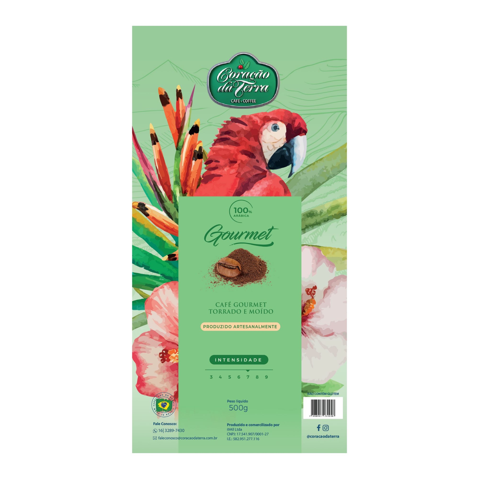 Café Coração da Terra, Gourmet, embalagem de 500 gramas, nas versões grãos e moído, com notas de chocolate amargo, melado, floral, cítrico, apresentando acidez cítrica, longa finalização com notas de chocolate e cítricas. Este café pontua no mínimo 84 pontos, de acordo com a tabela da SCA – Specialty Coffee Association.